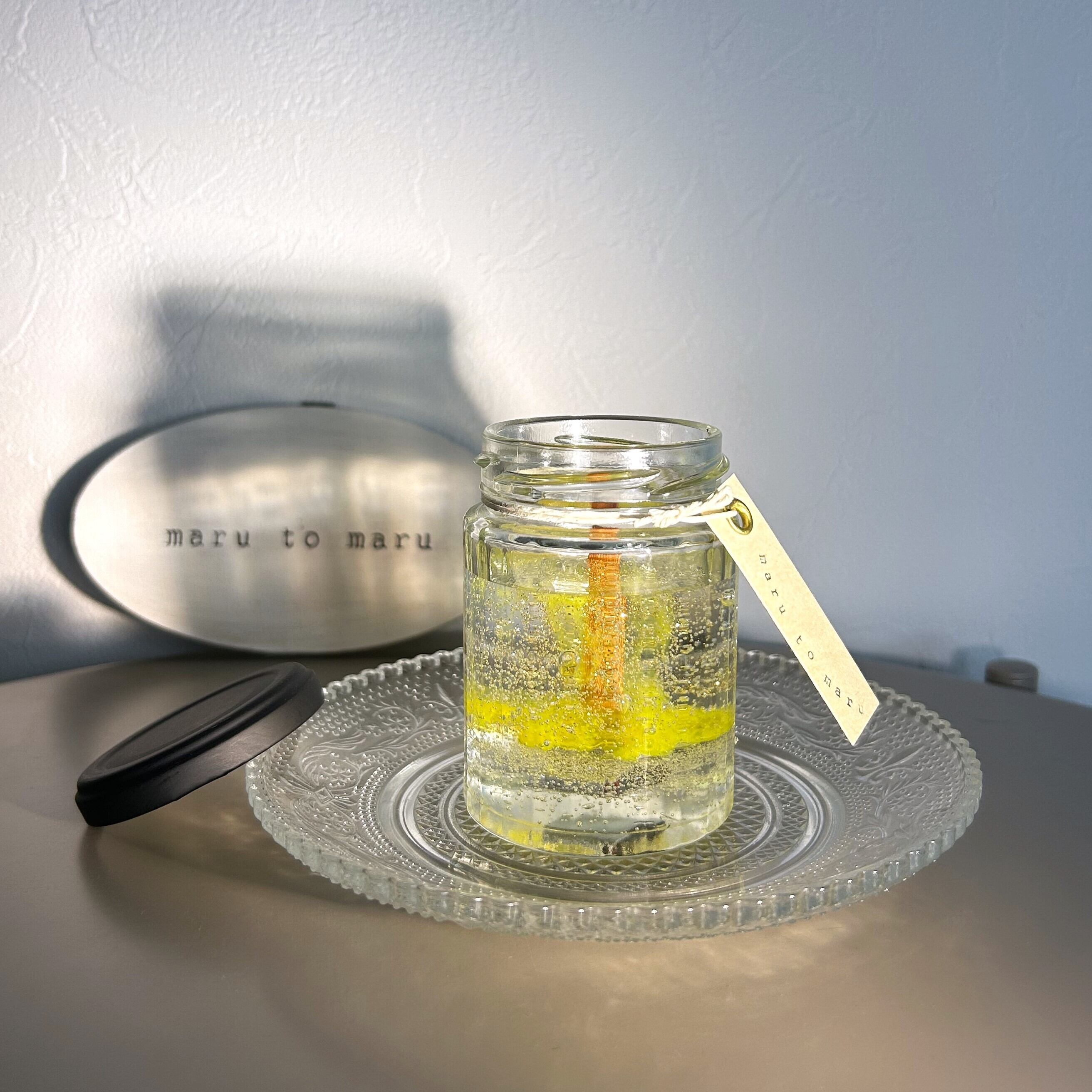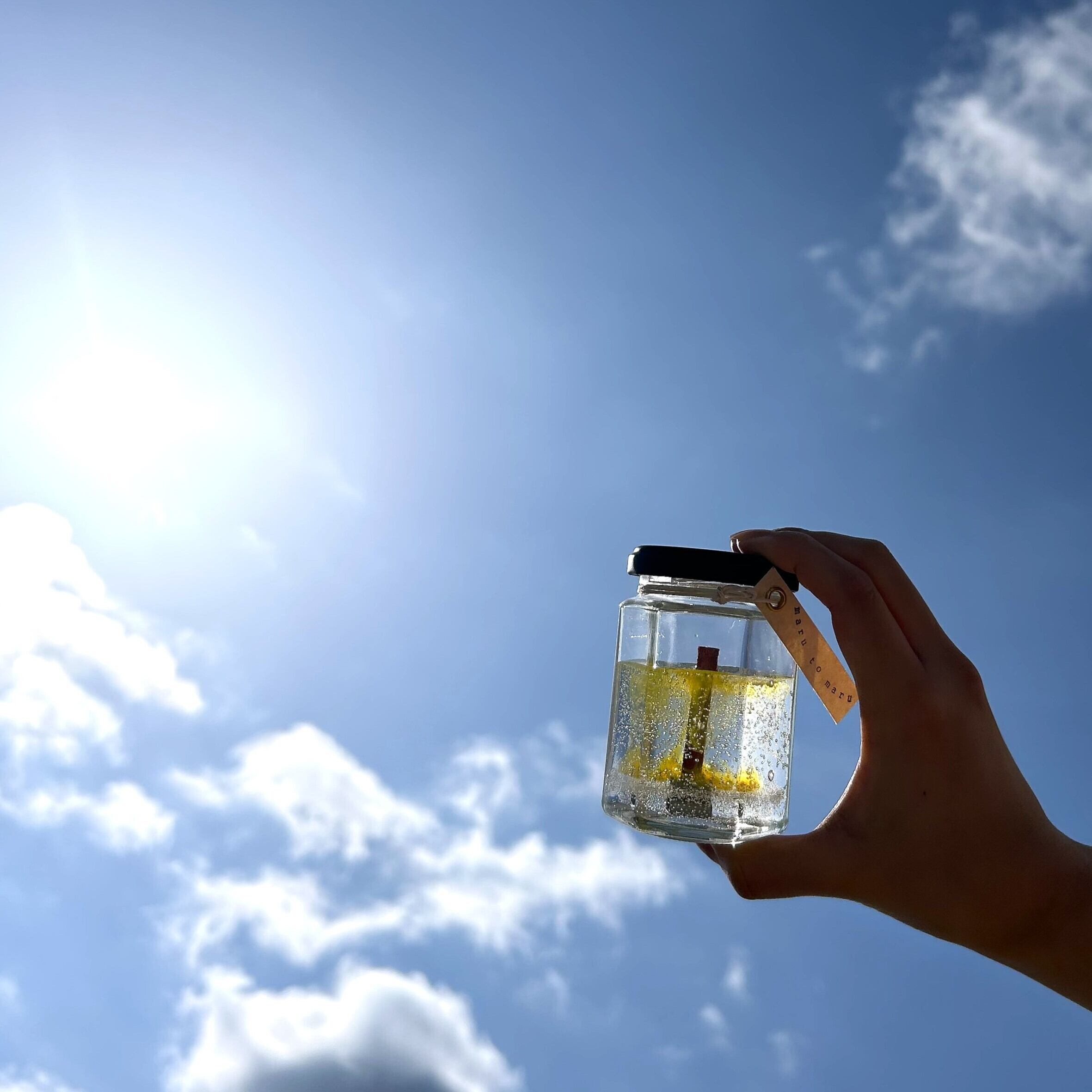 火を灯すとキラキラ輝く蒲公英色のワックスに、木芯が奏でてくれるパチパチと焚火のような音、ティートゥリーのさわやかな香りもお楽しみください。
