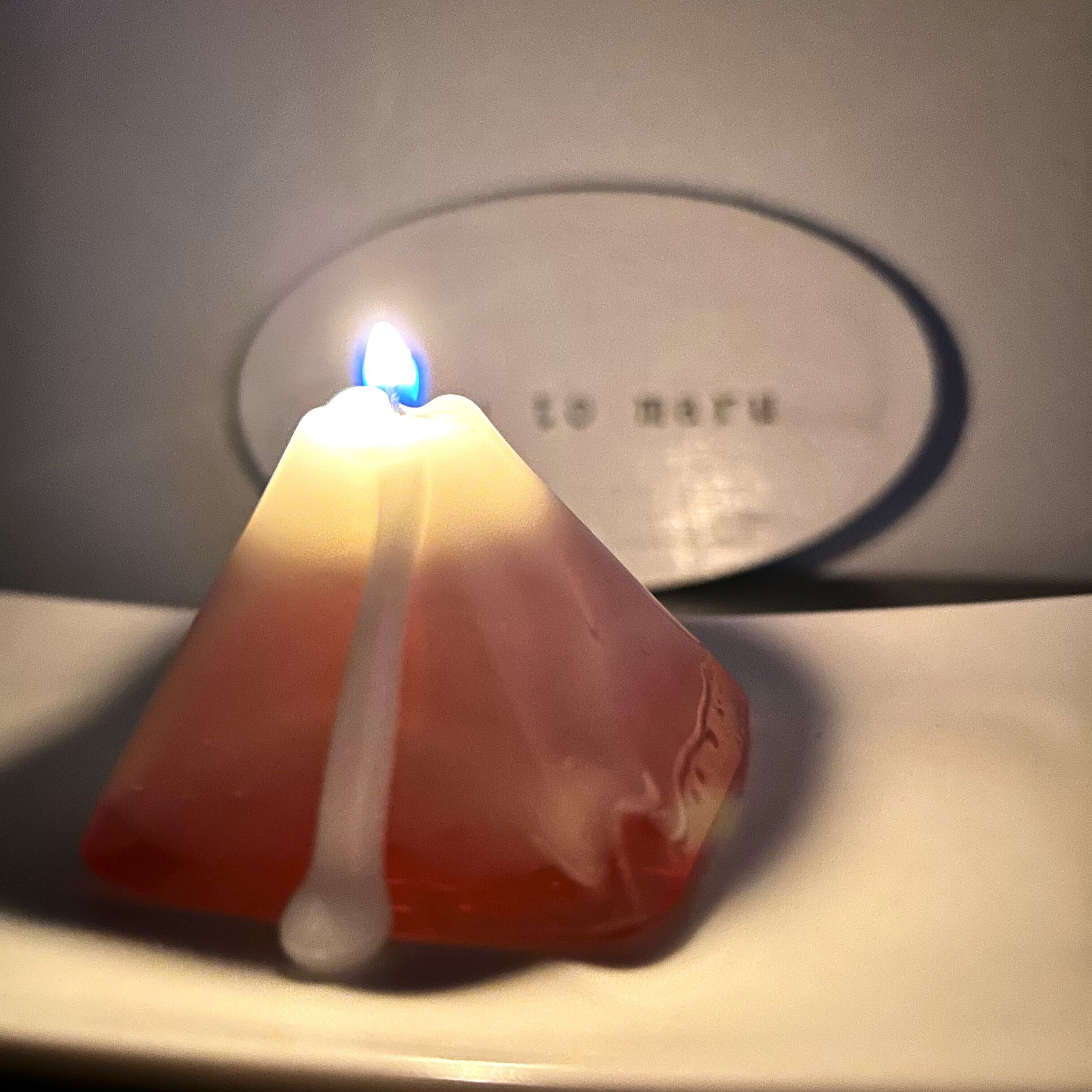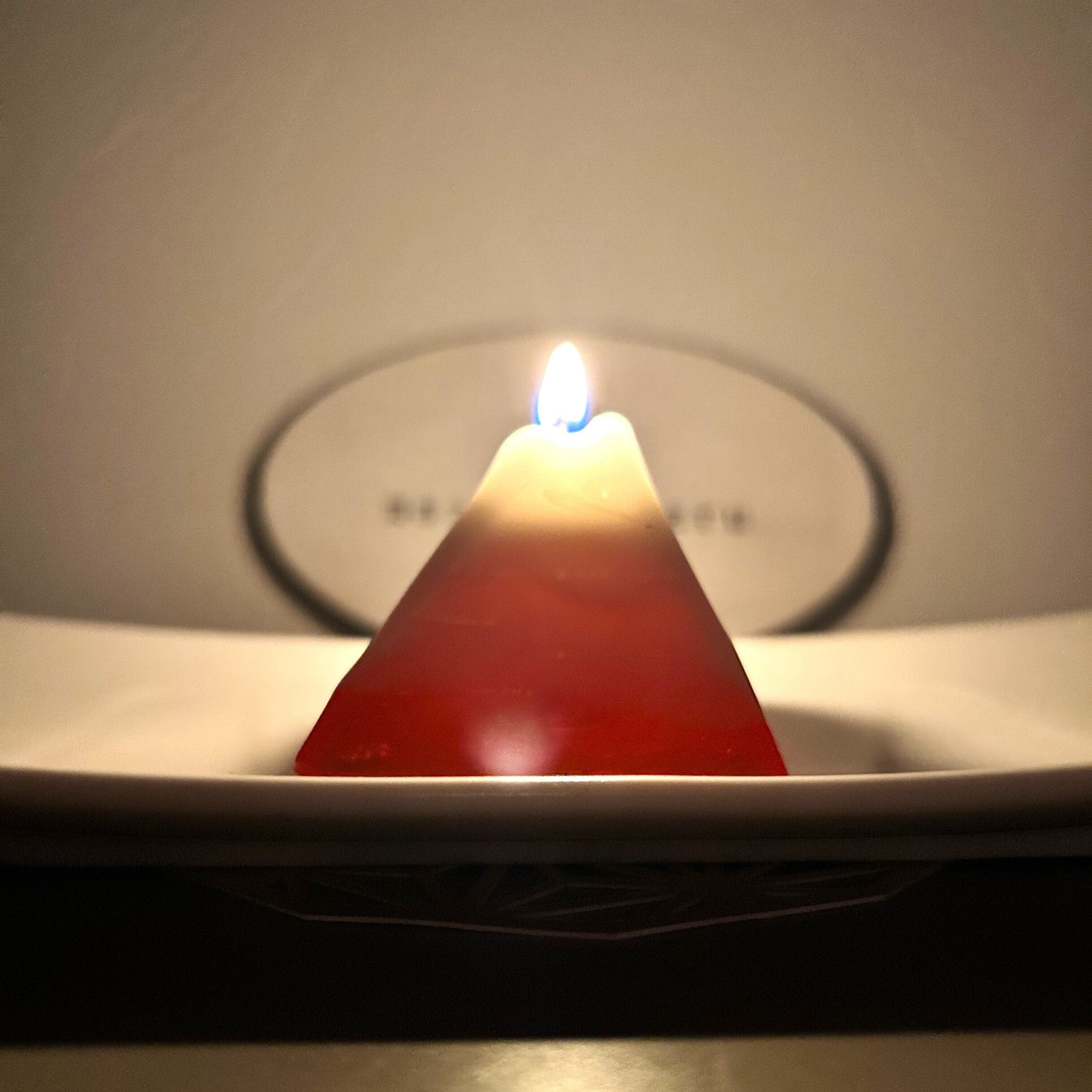 吉兆の象徴・赤富士を、猩々緋(しょうじょうひ)で表現したキャンドルです。