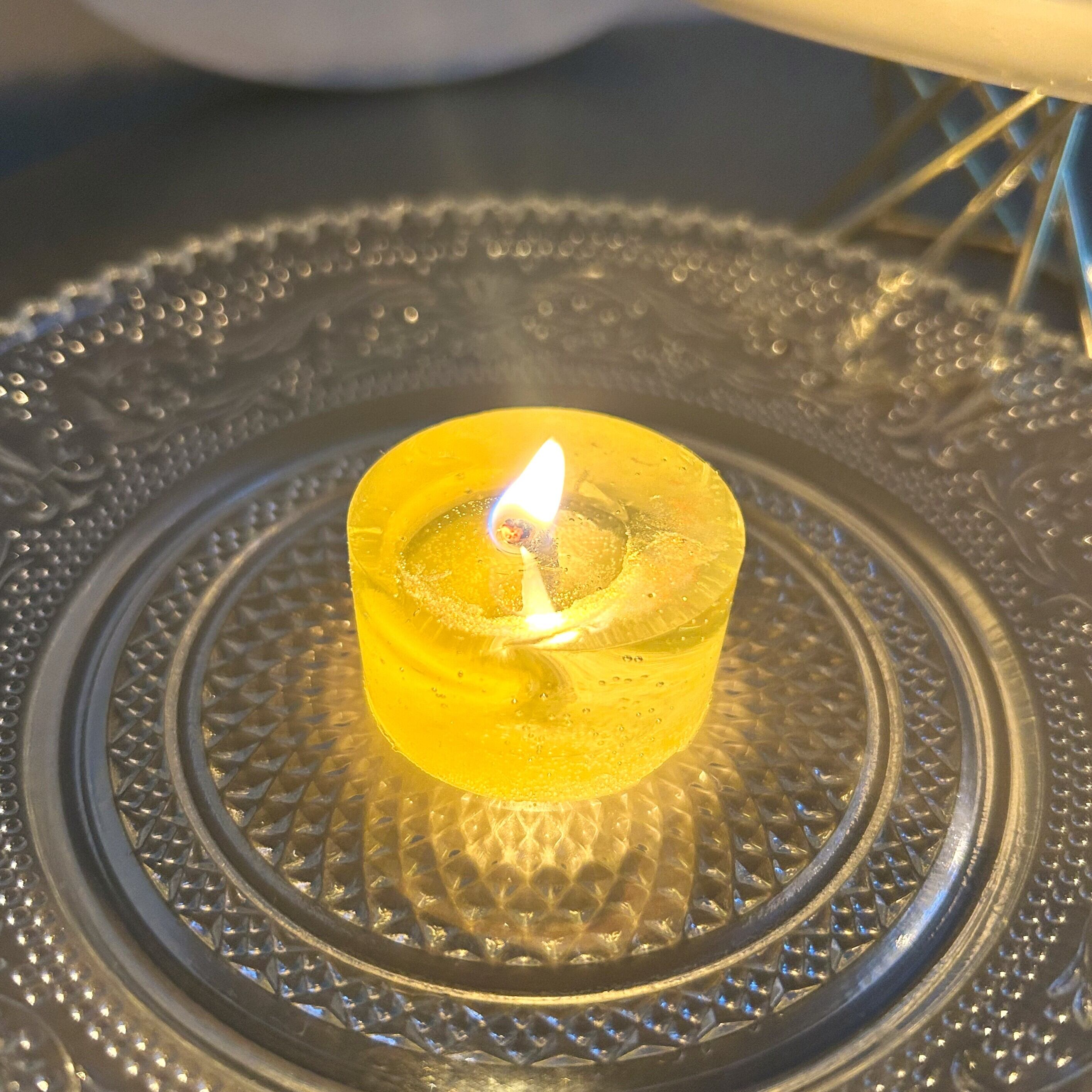 *炎を消す時、芯をピンセットなどで溜まったワックスの中に折り、すぐに真っ直ぐ起こしていただくと、嫌な匂いや煙が起こりません。