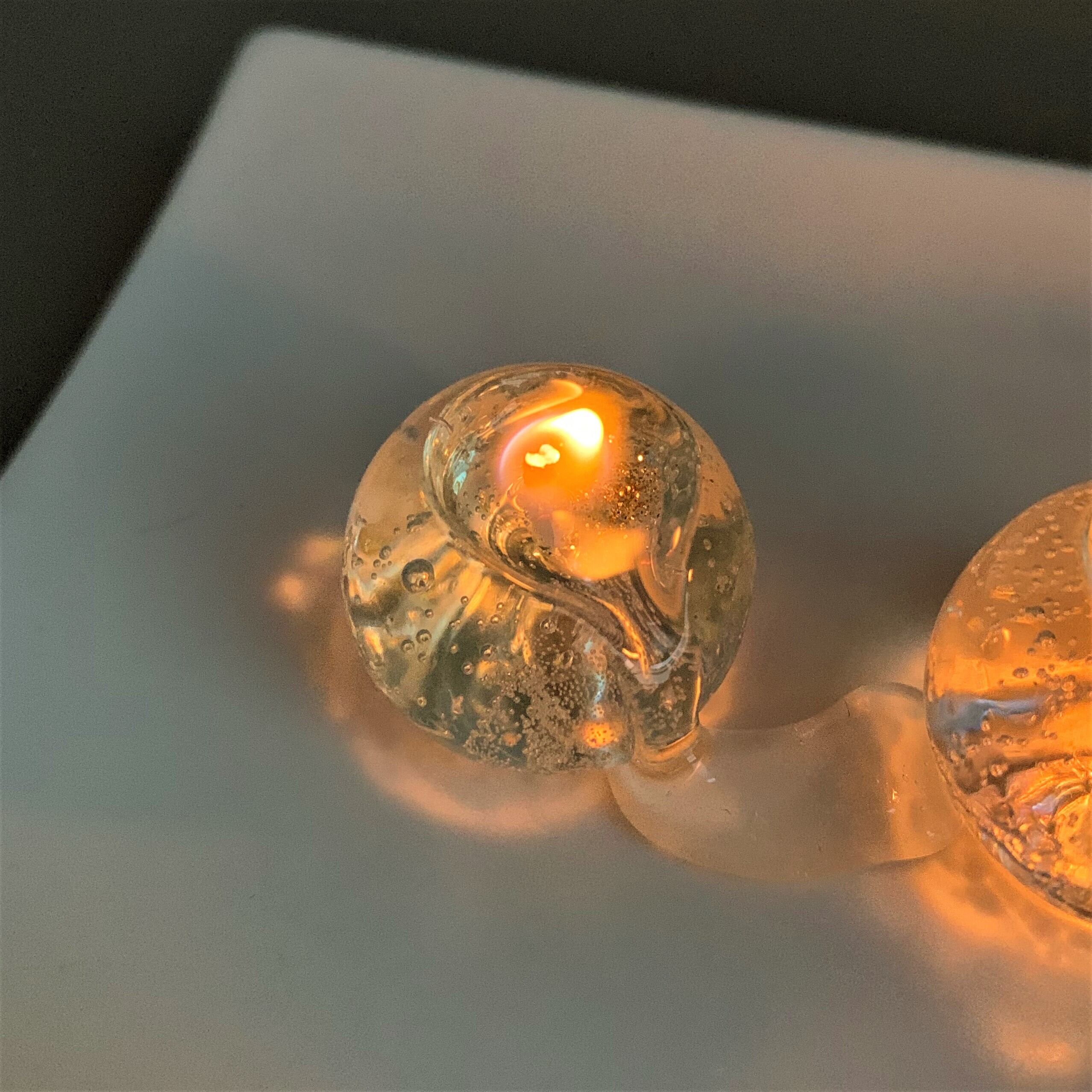 火を灯す際は、キャンドルよりひと回り大きい、ある程度深さのあるガラス、陶器などの不燃性、耐熱性のある容器やキャンドルホルダーをご使用ください。