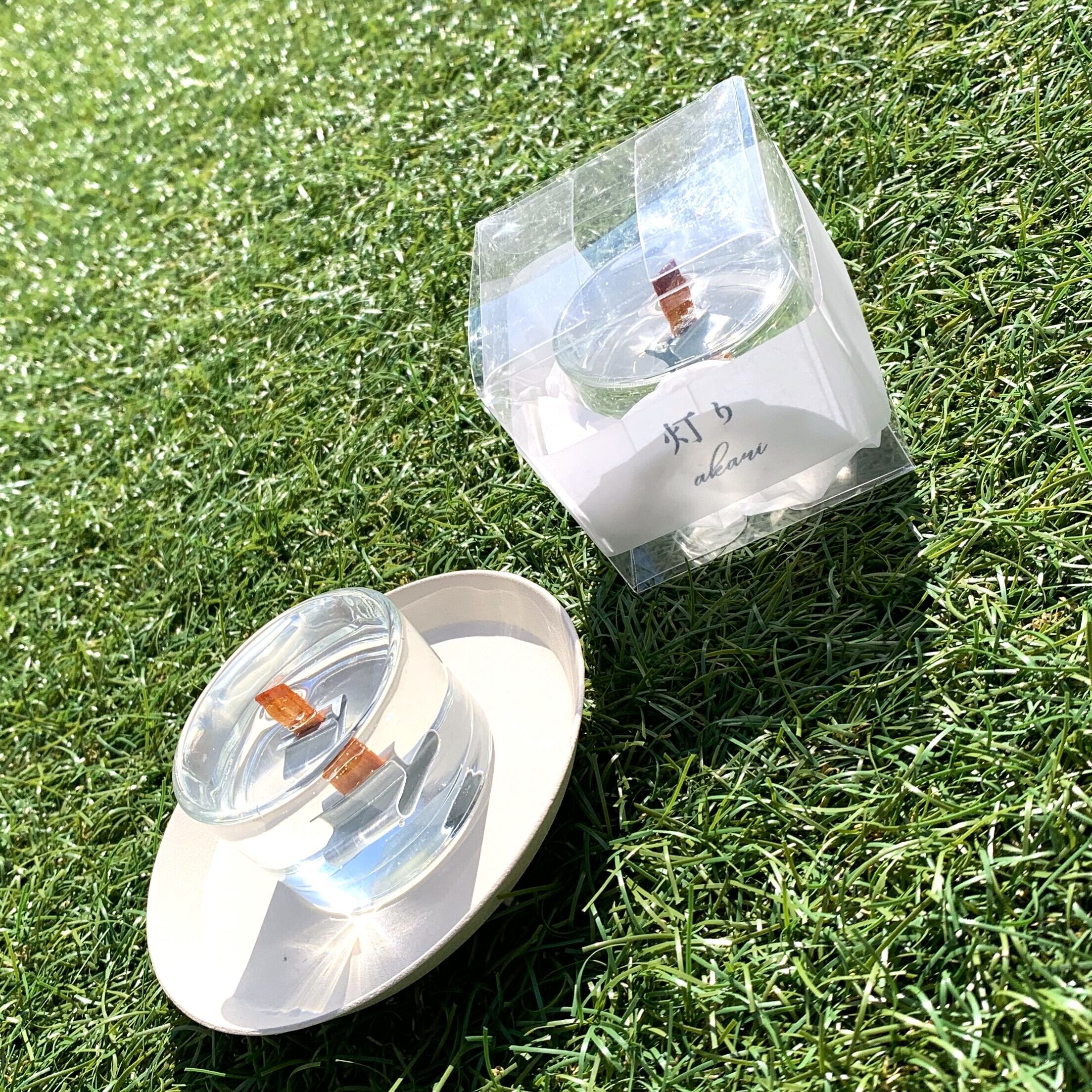 火を灯す際は、キャンドルよりひと回り大きい、ある程度深さのあるガラス、陶器などの不燃性、耐熱性のある容器やキャンドルホルダーをご使用ください。
