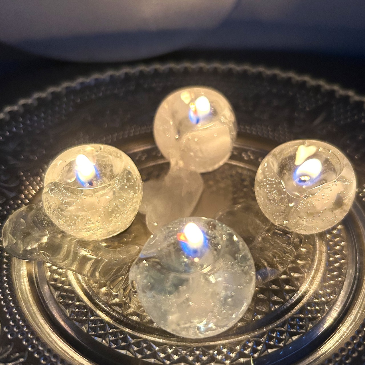 *炎を消す時、芯をピンセットなどで溜まったワックスの中に折り、すぐに真っ直ぐ起こしていただくと、嫌な匂いや煙が起こりません。