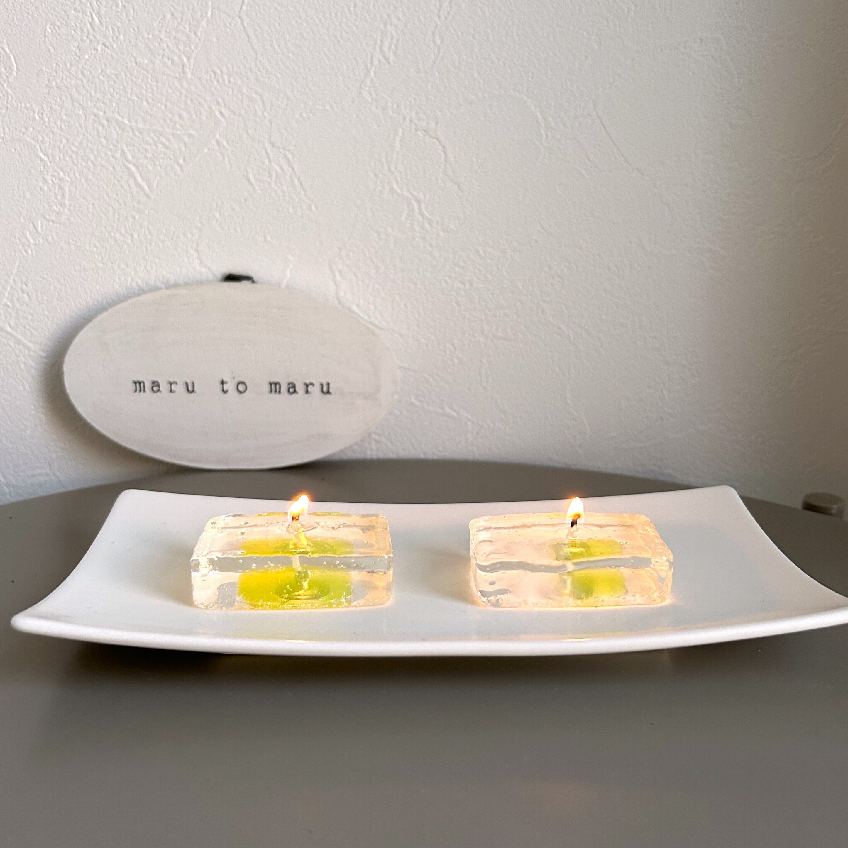火を灯す際は、キャンドルよりひと回り大きい、ある程度深さのあるガラス、陶器などの不燃性、耐熱性のある容器やキャンドルホルダーをご使用ください。