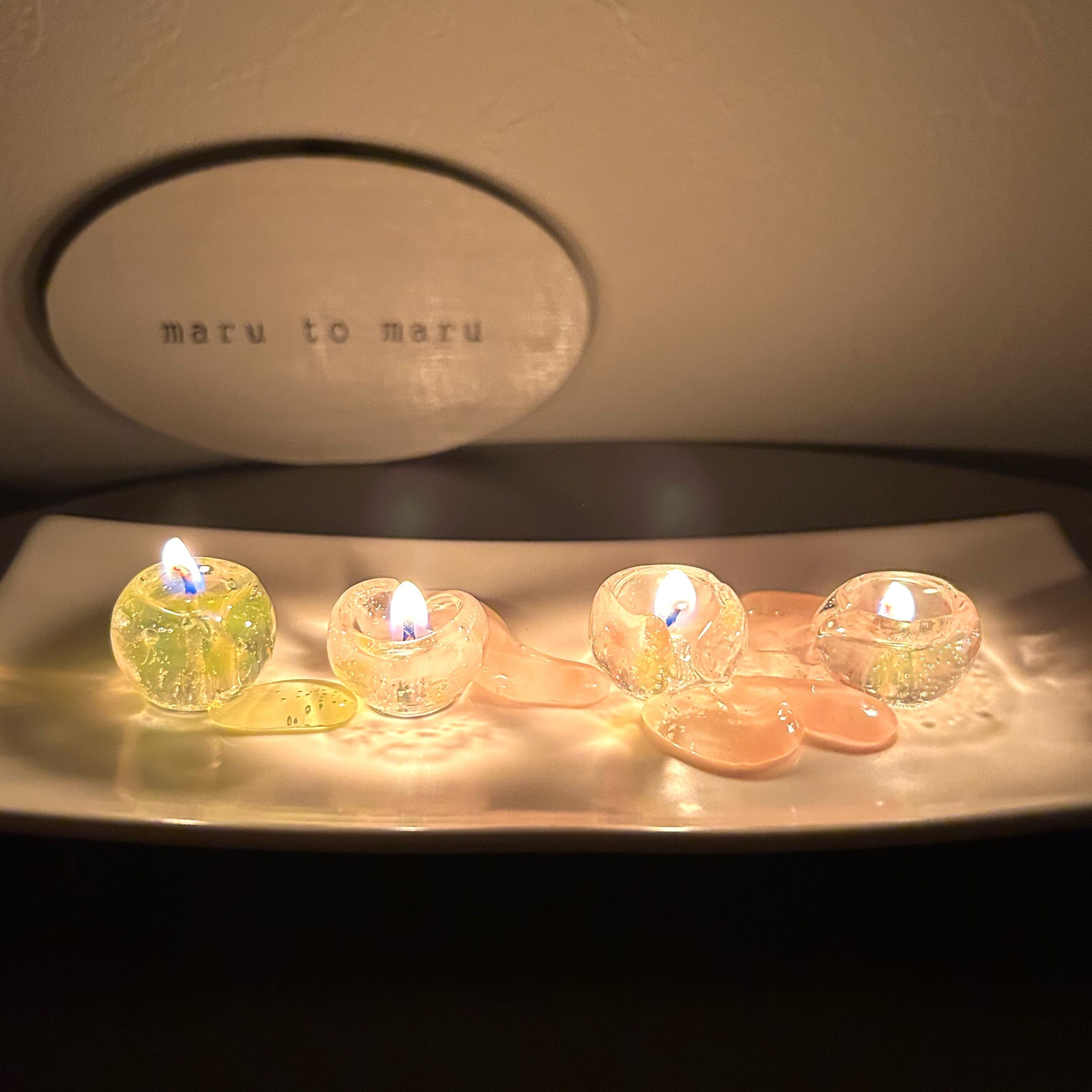火を灯す際は、キャンドルよりひと回り大きい、ある程度深さのあるガラス、陶器などの不燃性、耐熱性のある容器やキャンドルホルダーをご使用ください。