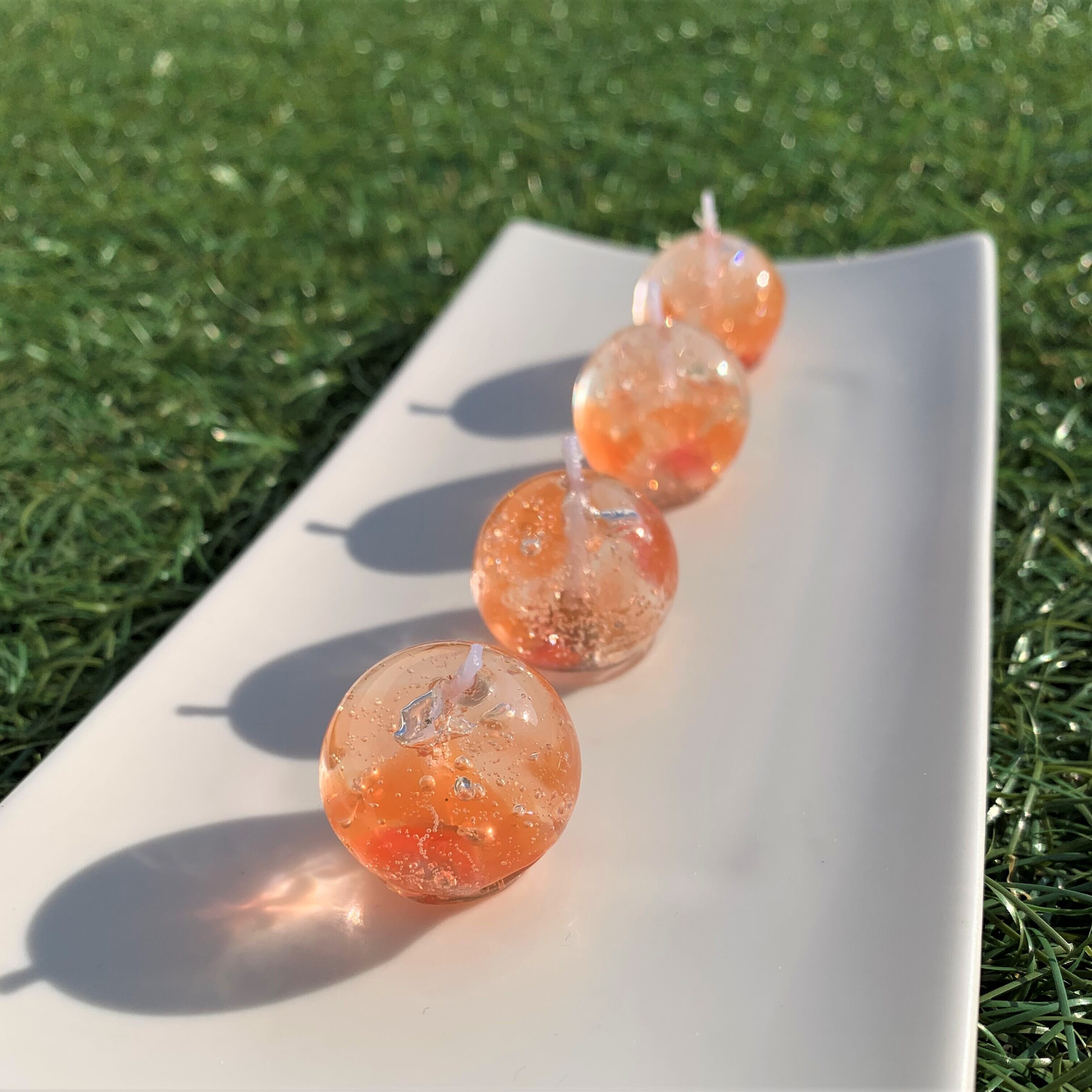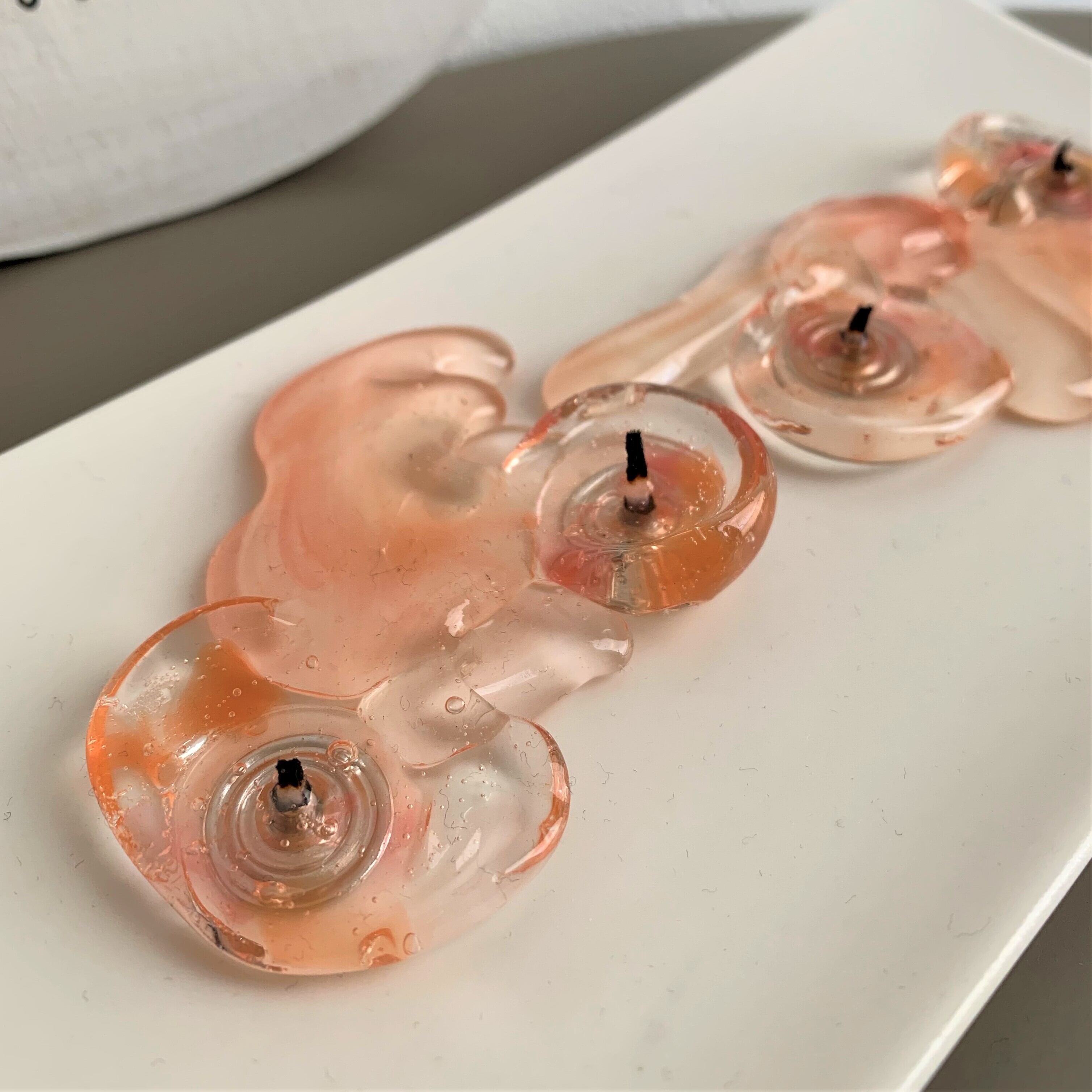 火を灯した時にジェルワックスが溶けて見せてくれる茜色のグラデーションもお楽しみください。
