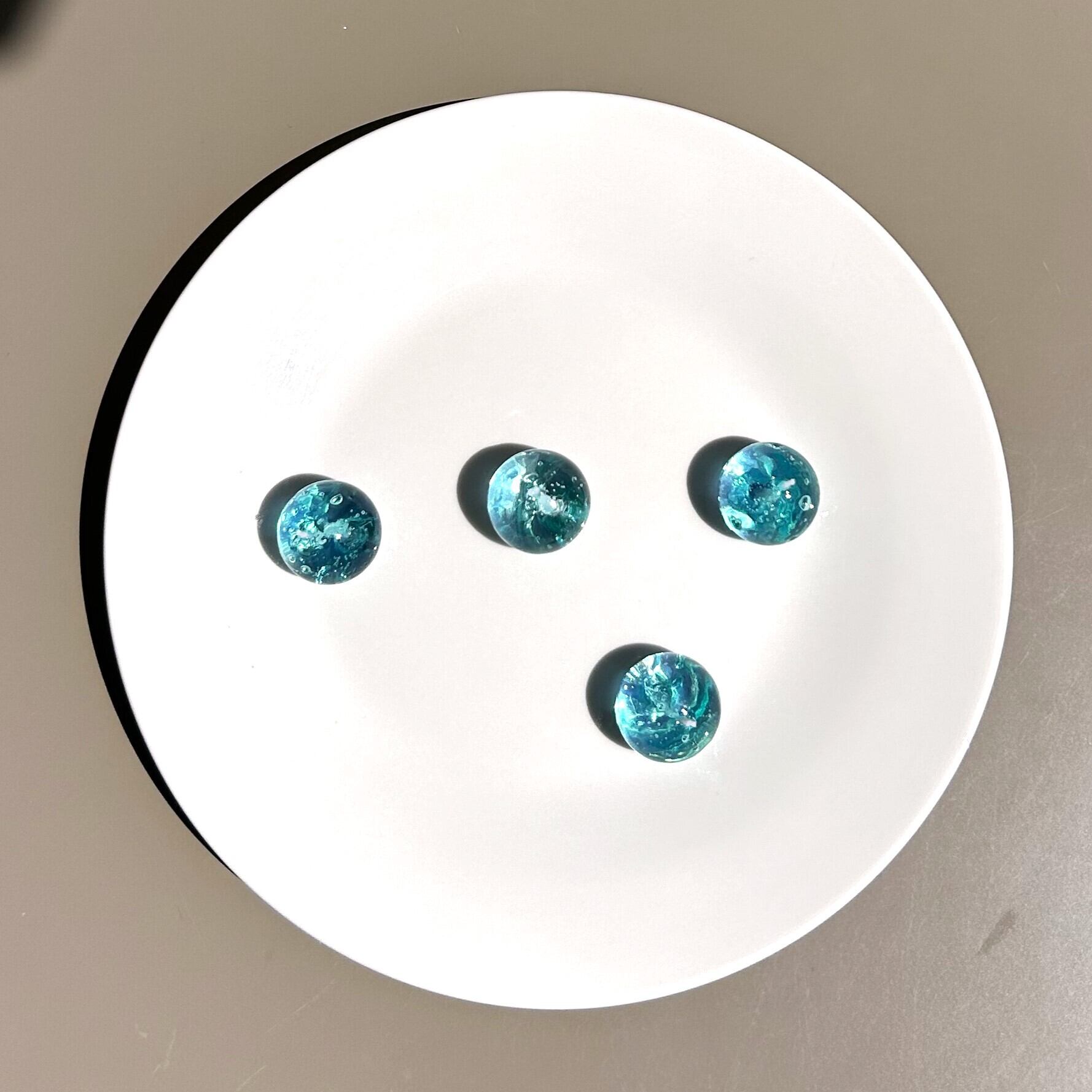 クリアな氷にソーダ水を注いだ爽やかなイメージをビー玉にしてみました。