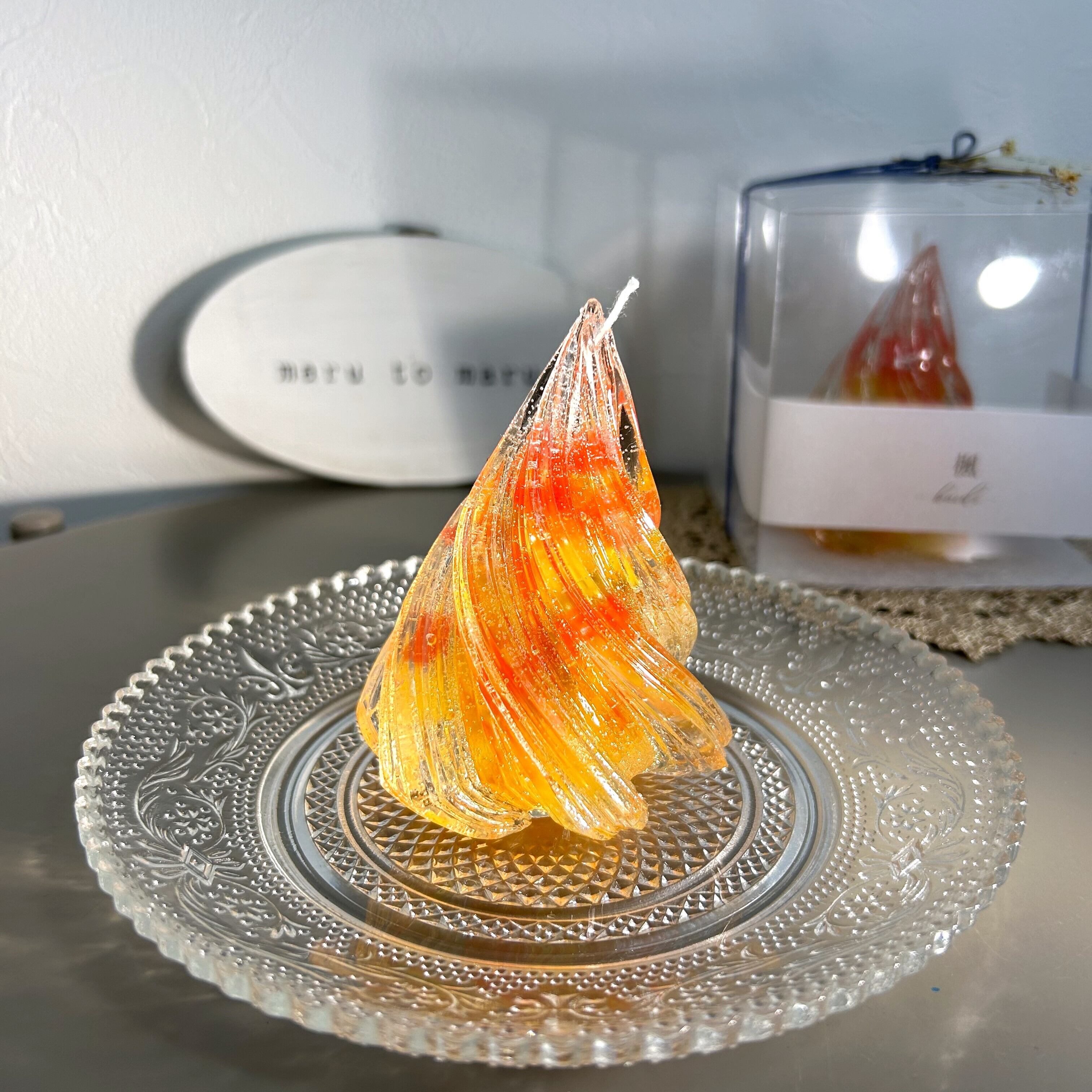 火を灯す際は、キャンドルよりひと回り大きい、ある程度深さのあるガラス、陶器などの不燃性、耐熱性のある容器やキャンドルホルダーをご使用ください。